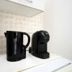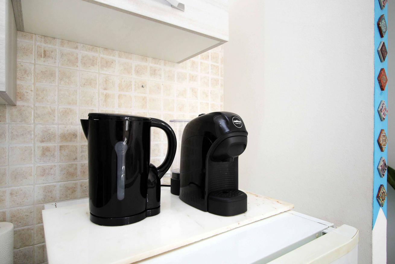 La cucina è completa di ogni comfort: piano cottura a gas, forno, microonde, bollitore, macchina del caffè, frigorifero con congelatore e un set completo di utensili e stoviglie. Che si tratti di preparare la colazione, un pranzo veloce o una cena in tranquillità, avrete tutto ciò che serve a portata di mano.