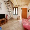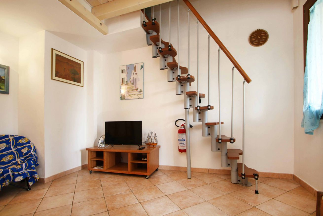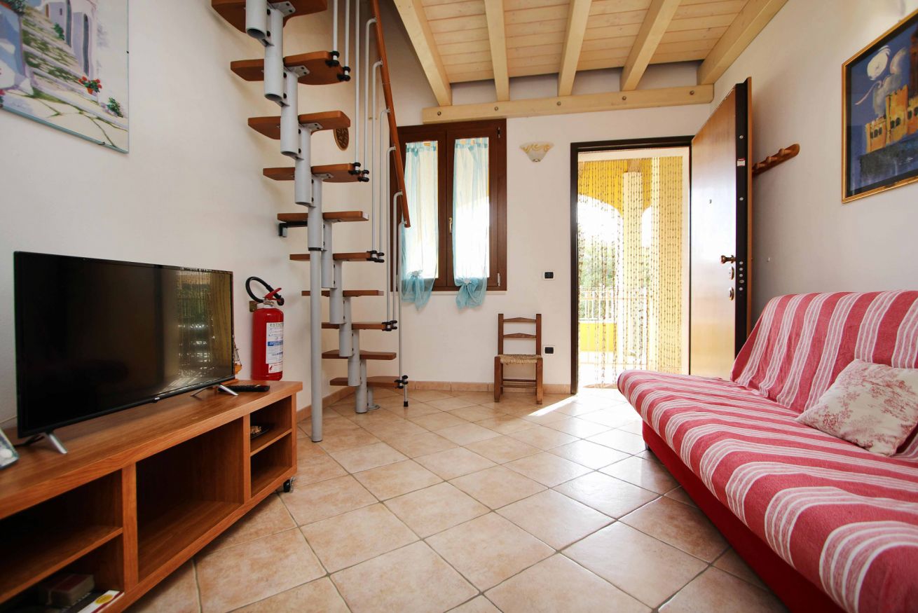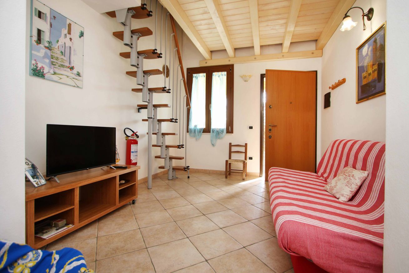Un piccolo soggiorno con divano dove si può rilassare guardando un film che all'occorrenza si trasforma in divano letto.