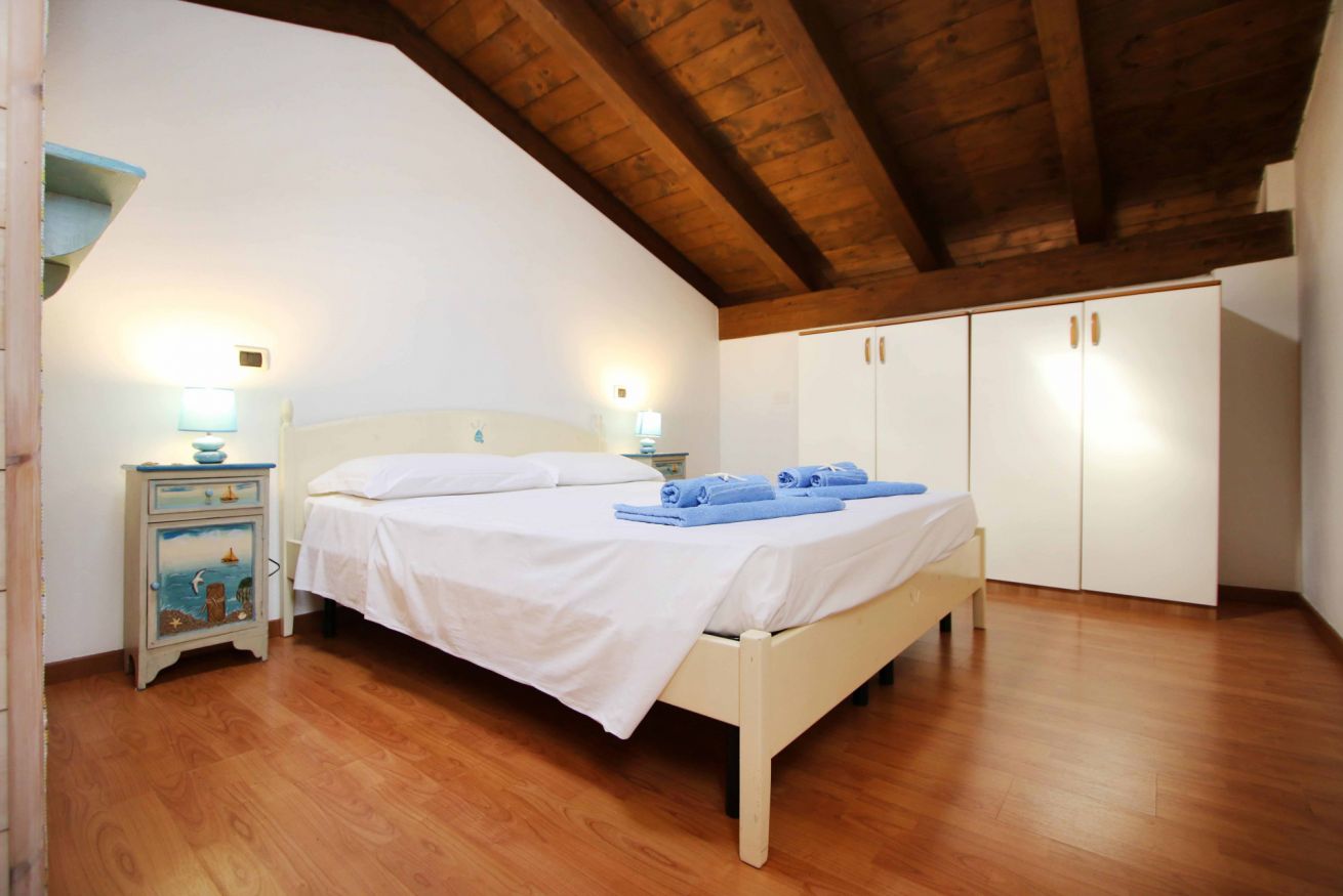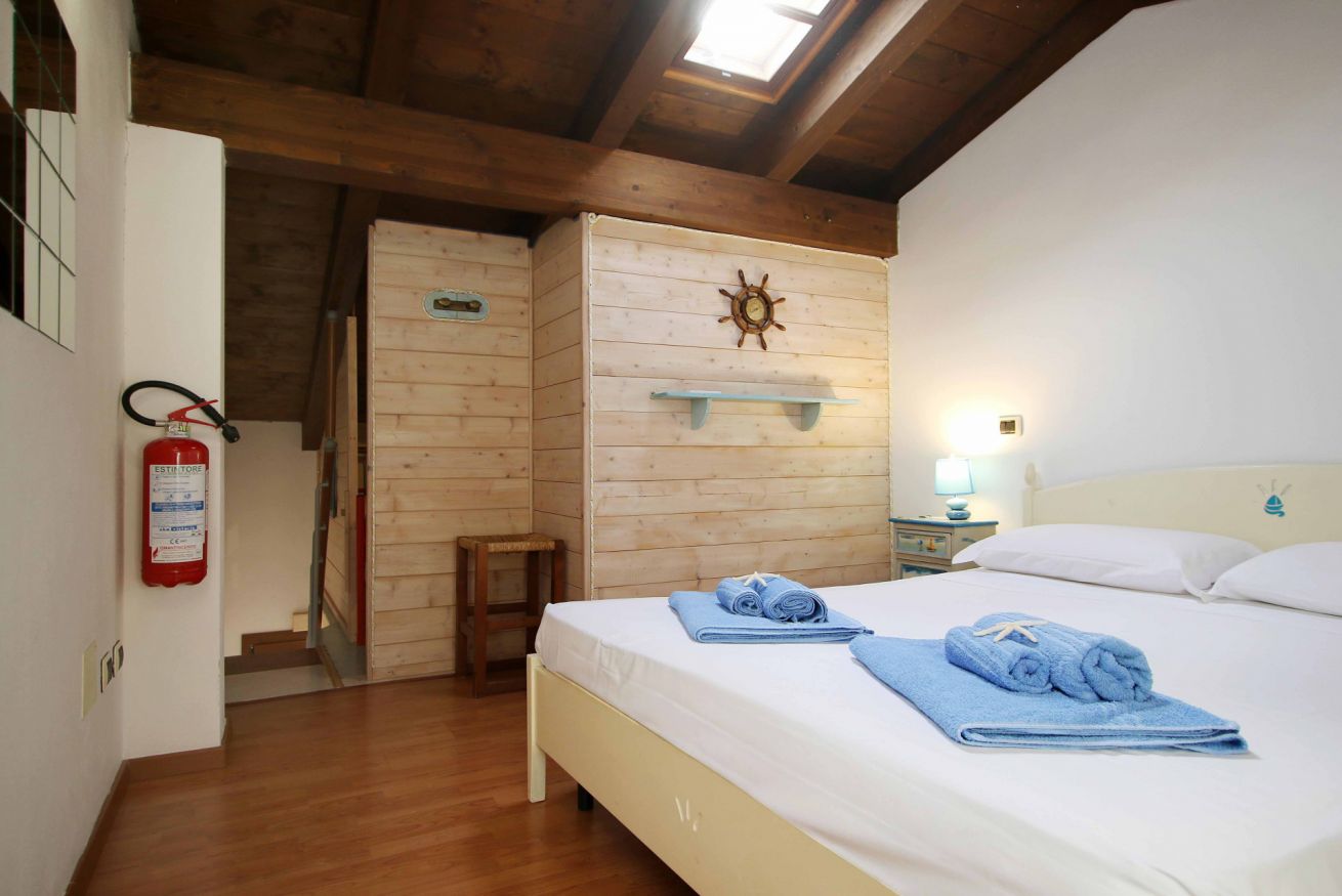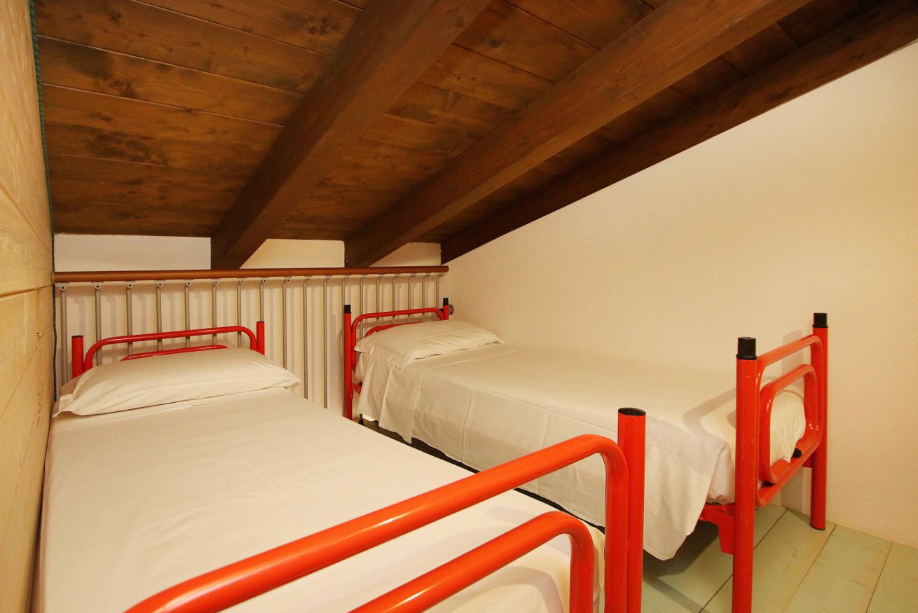 Al piano superiore troviamo la camera principale con letto matrimoniale é una piccola cameretta perfetta per due bambini .